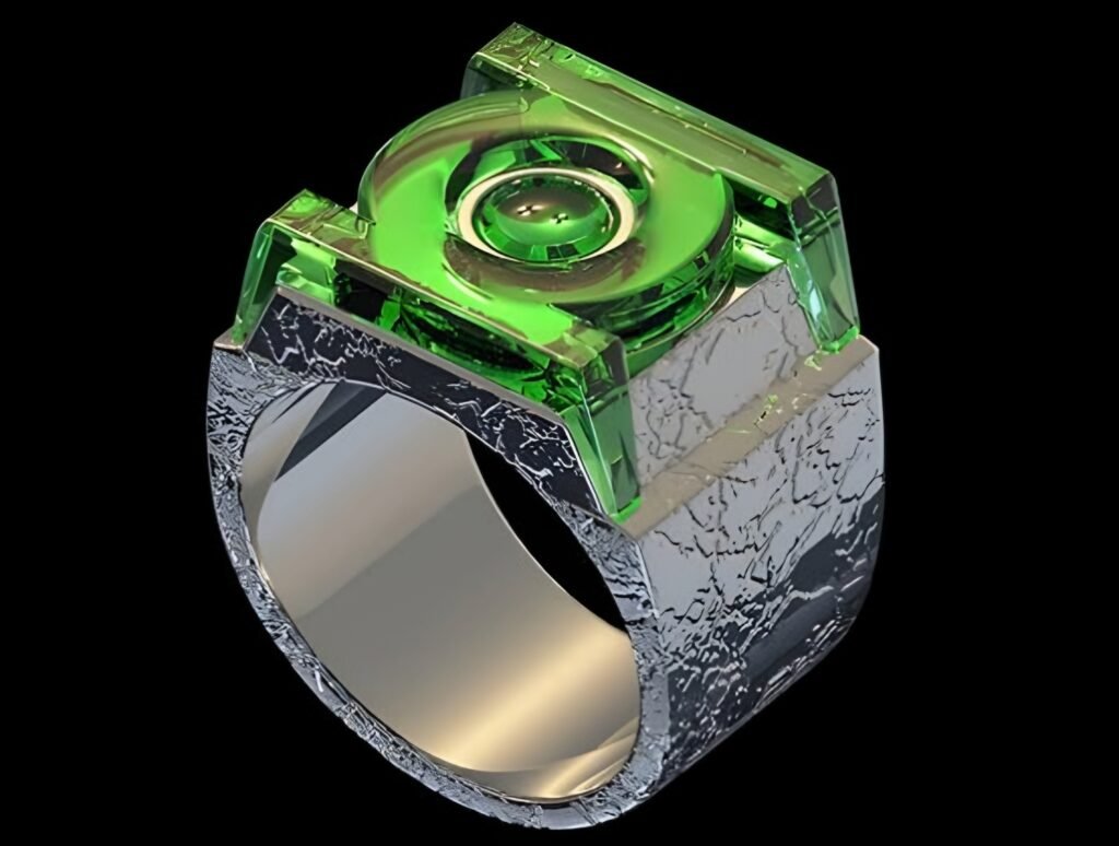 This version is very different from the ring seen in the Green Lantern, where Ryan Reynolds portrayed Hal Jordan. That earlier design displayed a glowing Green Lantern symbol across a black band.
